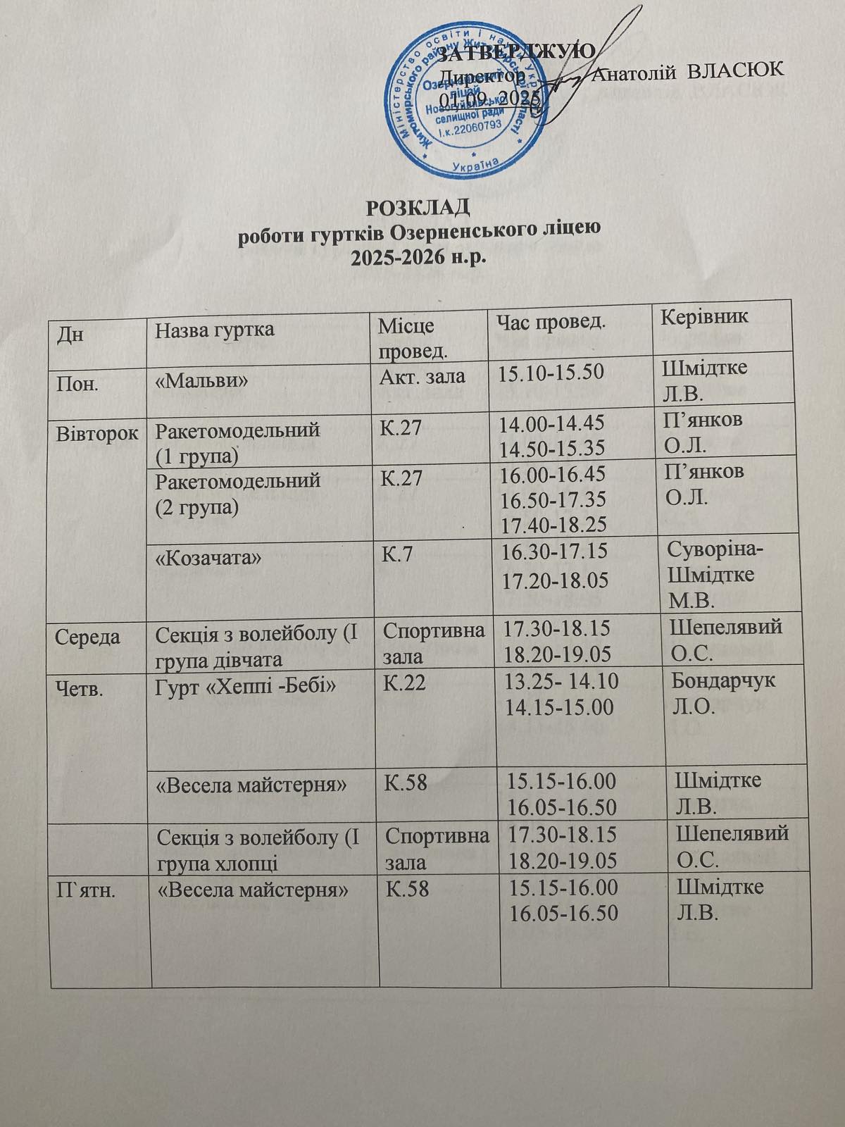 Функціонує 7 гуртків та клубів за інтересами, у них займаються 105 учнів.